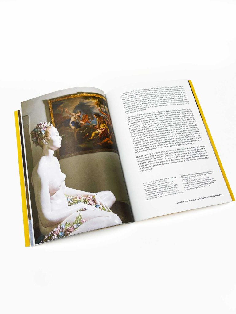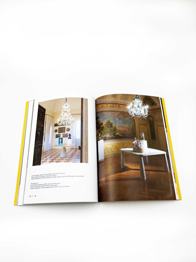 Il volume nasce per celebrare l’omonima mostra ospitata dal MarteS, il Museo d’Arte Sorlini, a Calvagese della Riviera (BS). Si tratta di un progetto fuori dagli schemi che si sviluppa attraverso un originale dialogo a tre, a partire dagli ambienti museali della Collezione Sorlini, in cui è protagonista la pittura veneta e veneziana del Settecento. Ci sono poi le sculture contemporanee in ceramica e bronzo di Livio Scarpella, che mescolano richiami classici, preziosità tardo-barocca e accenni alla cultura pop. Si aggiungono infine i design storici di Angelo Mangiarotti (1921-2012), mobili e tavoli che da un lato fungono da supporto alle sculture di Scarpella, dall’altro sprigionano la loro inimitabile bellezza materica e formale.
